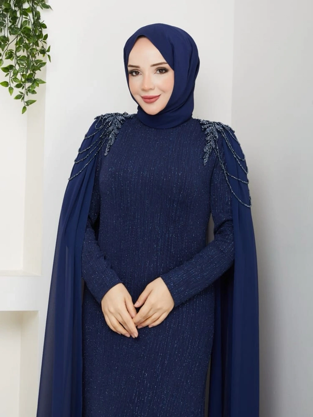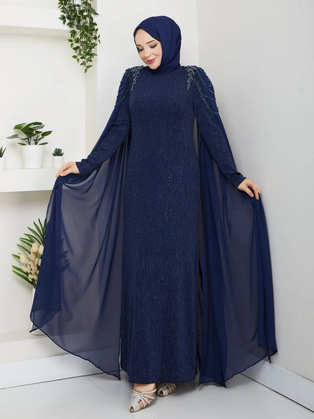 HİCRAN TESETTÜR ABİYE ELBİSE Lacivert