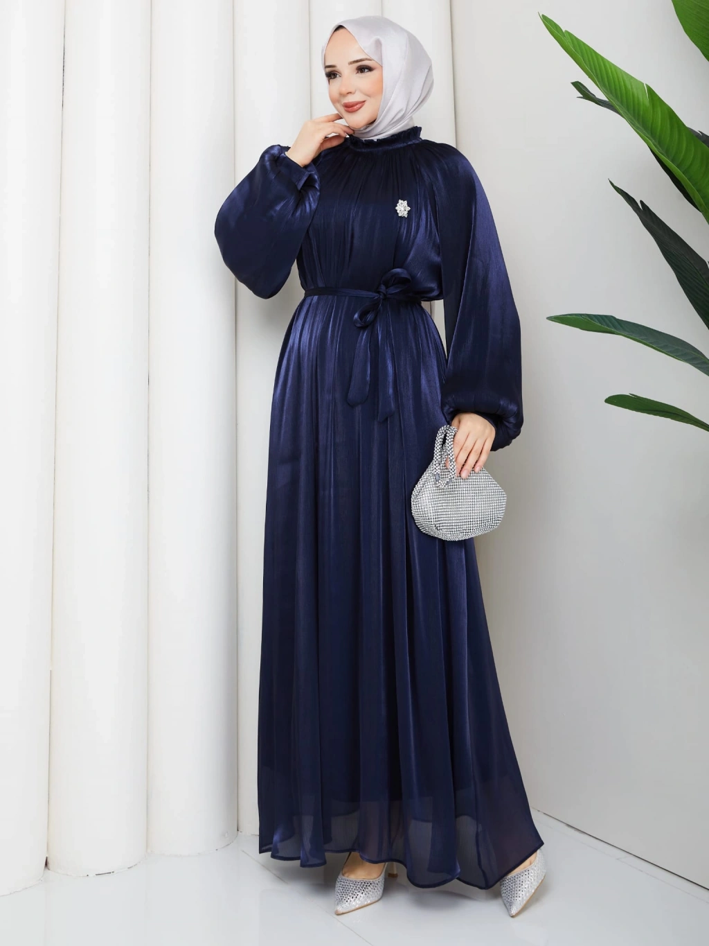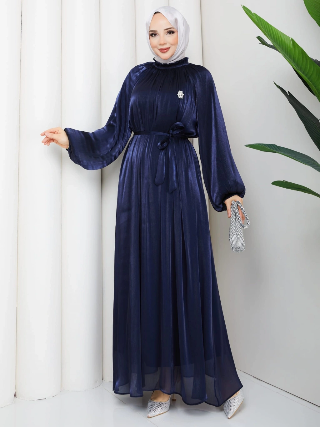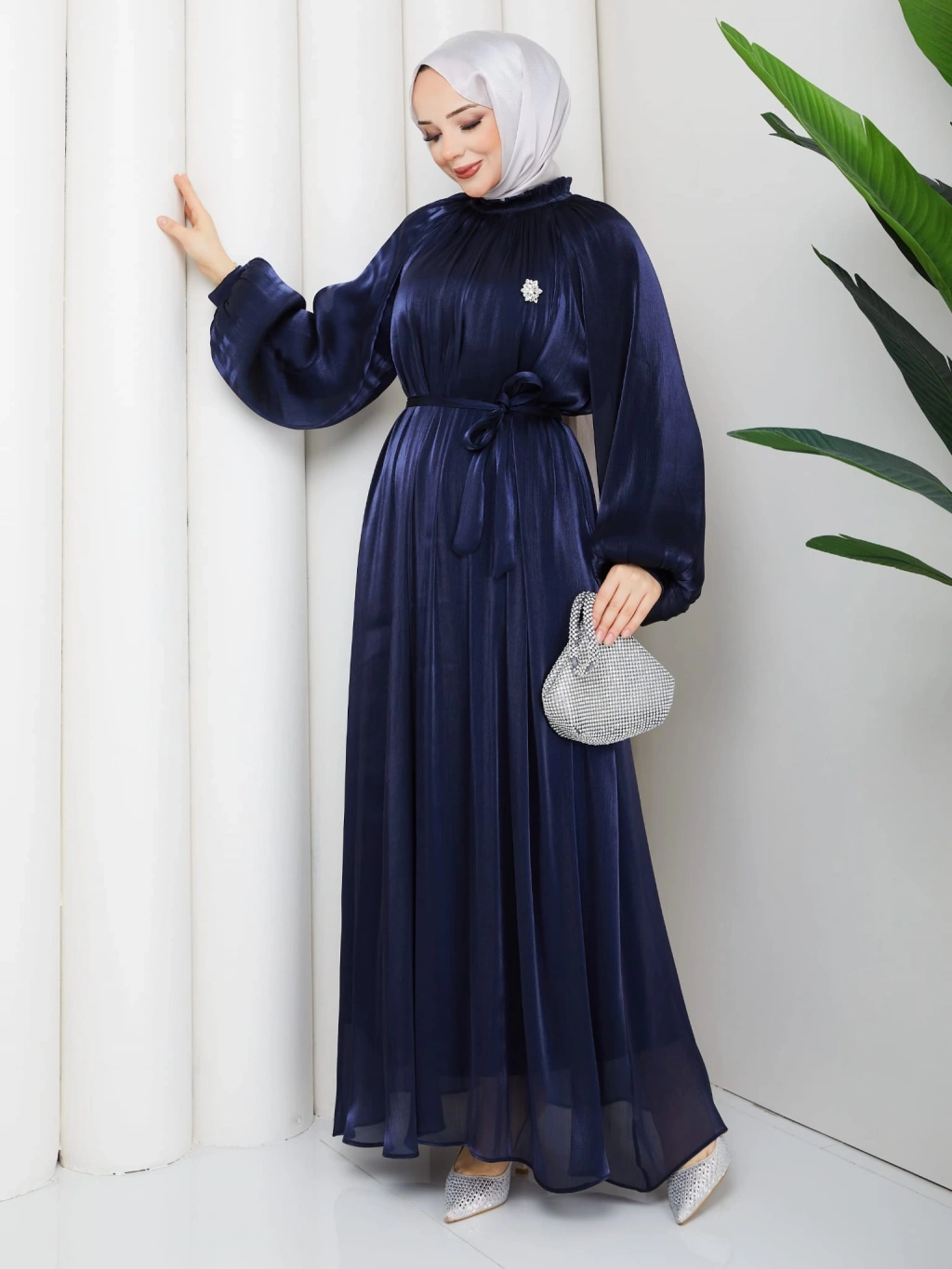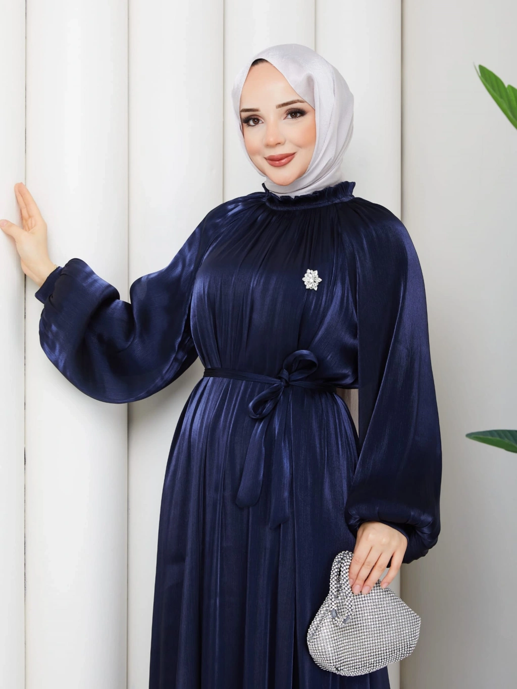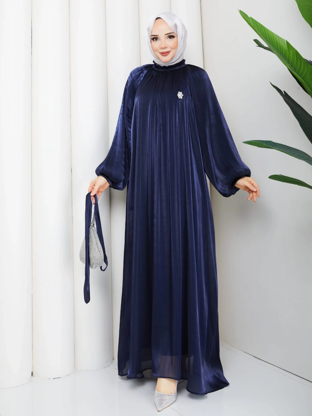 SİMGE TESETTÜR ELBİSE LACİVERT