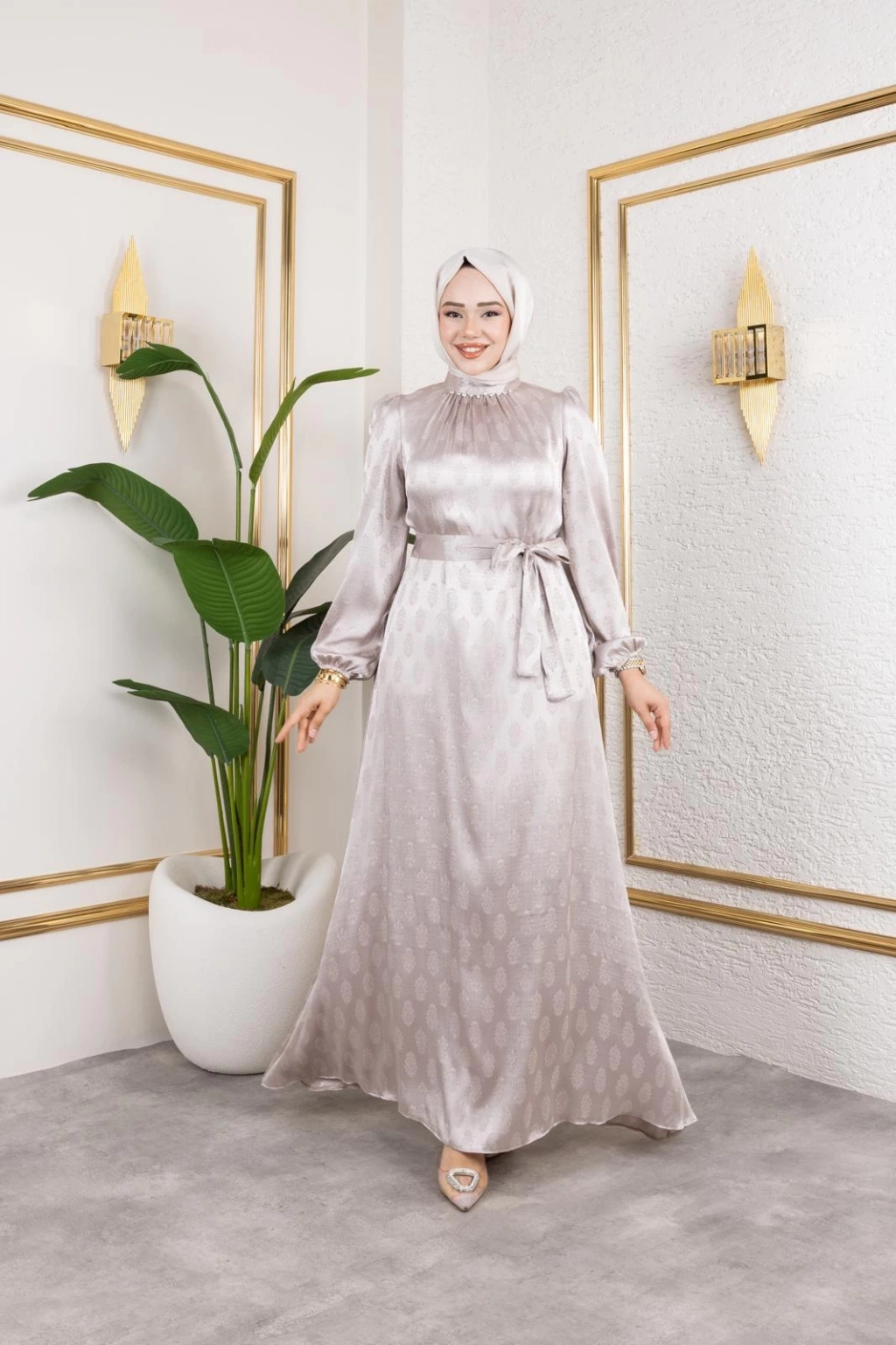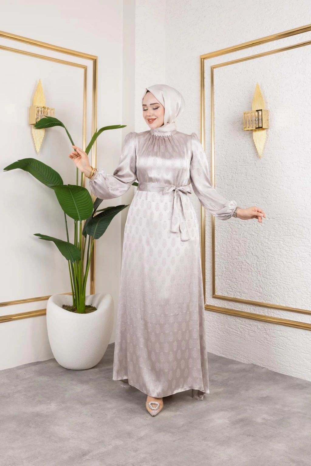 Beril tesettür elbise, jakarlı saten elbise, tesettür giyim elbise, düğün elbisesi, sade elbise tesettür, tam kalıp abiye elbise, astarsız elbise, yazlık saten elbise, dört mevsim elbise, tesettür elbise 2024, şık tesettür elbise, büyük beden tesettür elbise, nişan elbisesi, tesettür elbise