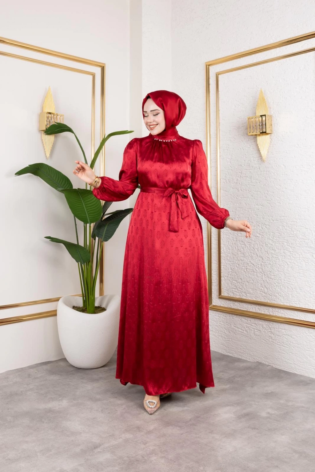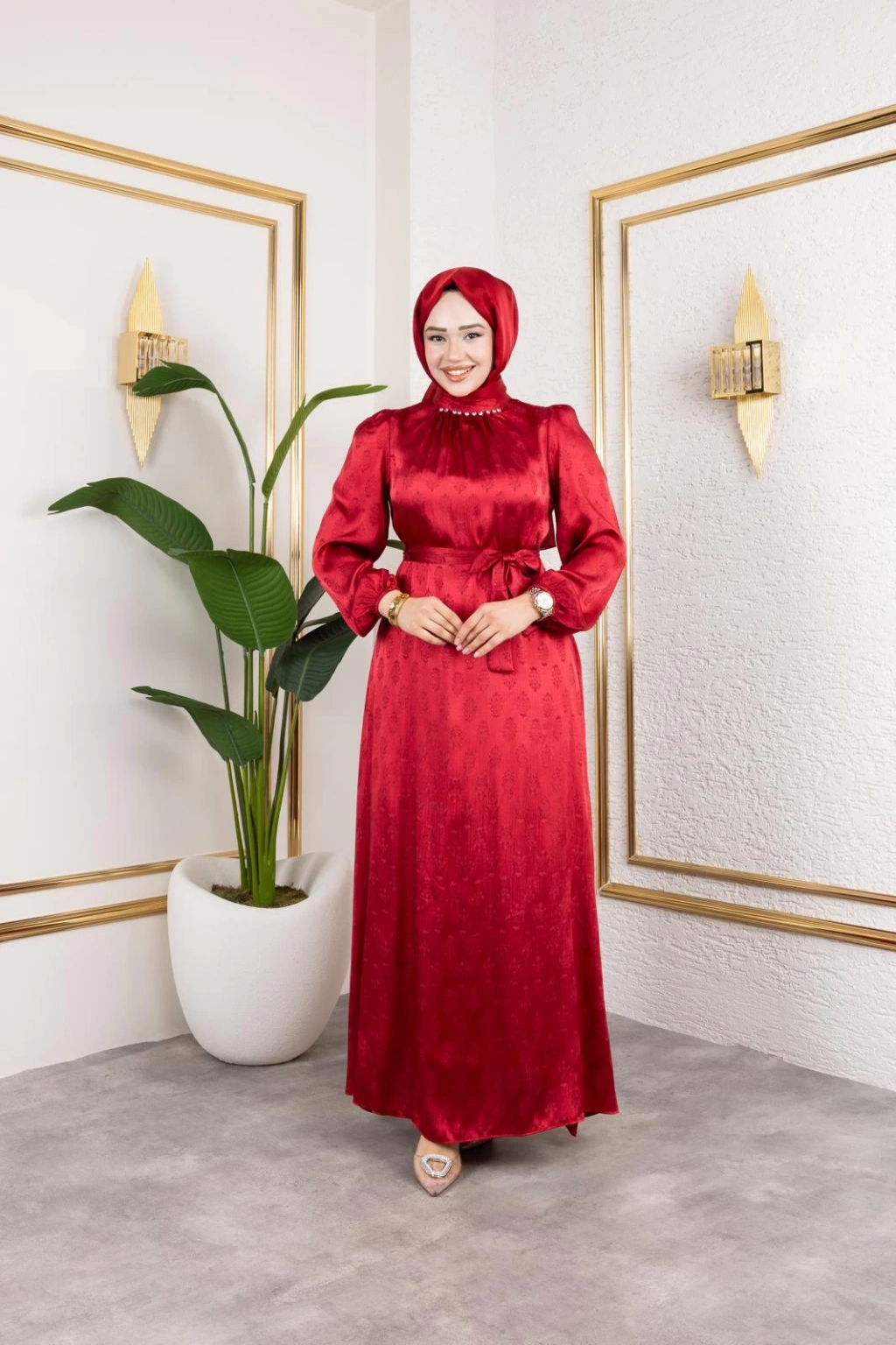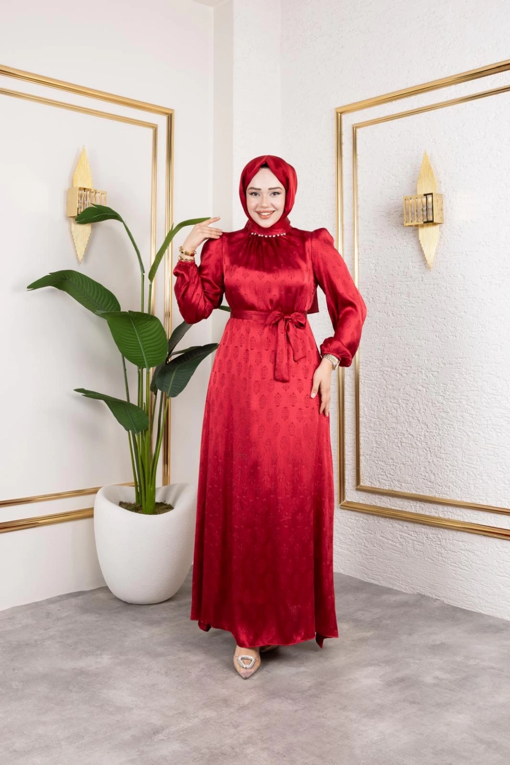 Beril tesettür elbise, jakarlı saten elbise, tesettür giyim elbise, düğün elbisesi, sade elbise tesettür, tam kalıp abiye elbise, astarsız elbise, yazlık saten elbise, dört mevsim elbise, tesettür elbise 2024, şık tesettür elbise, büyük beden tesettür elbise, nişan elbisesi, tesettür elbise