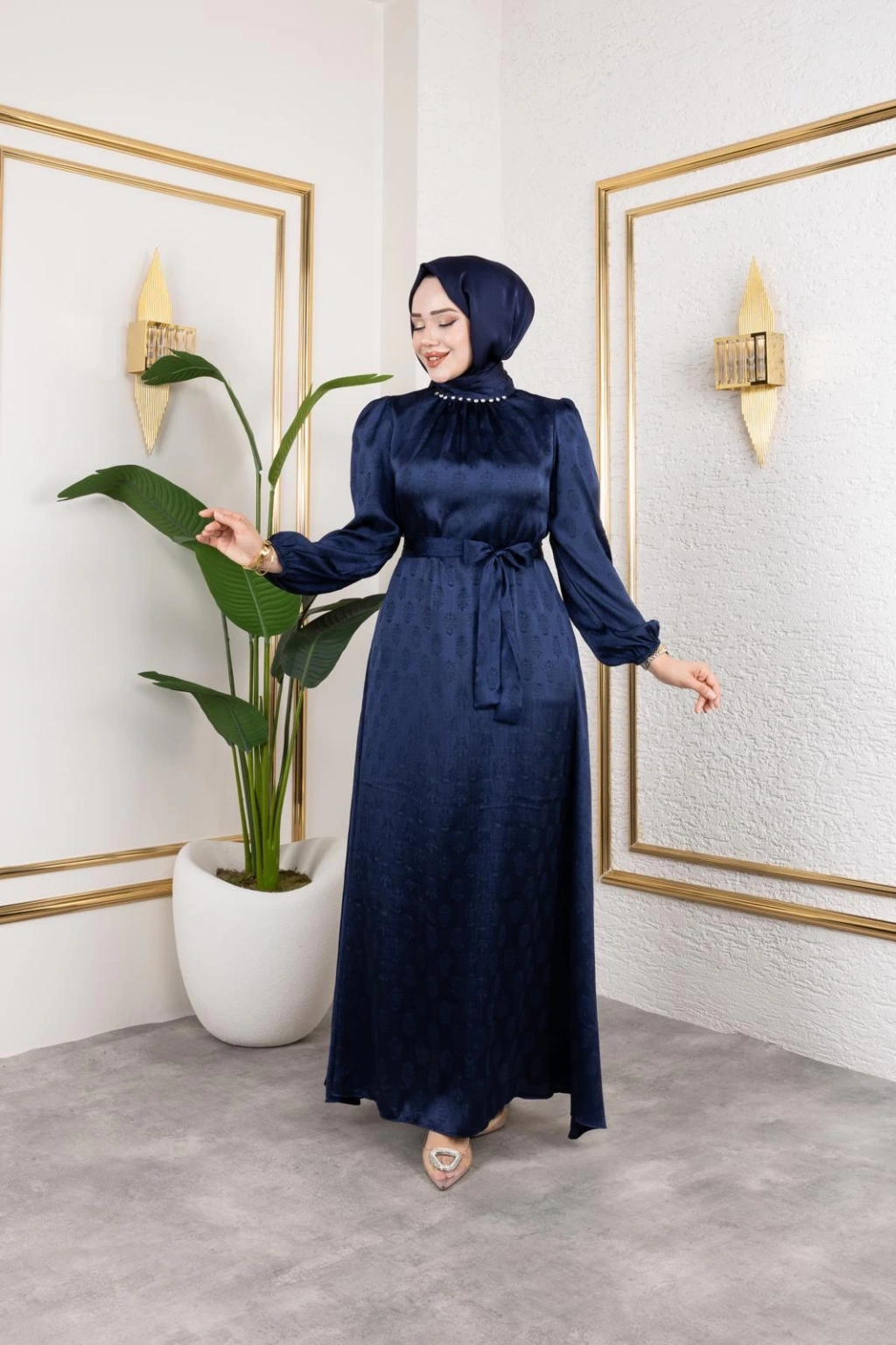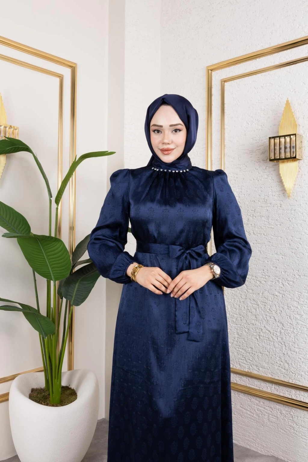Beril tesettür elbise, jakarlı saten elbise, tesettür giyim elbise, düğün elbisesi, sade elbise tesettür, tam kalıp abiye elbise, astarsız elbise, yazlık saten elbise, dört mevsim elbise, tesettür elbise 2024, şık tesettür elbise, büyük beden tesettür elbise, nişan elbisesi, tesettür elbise
